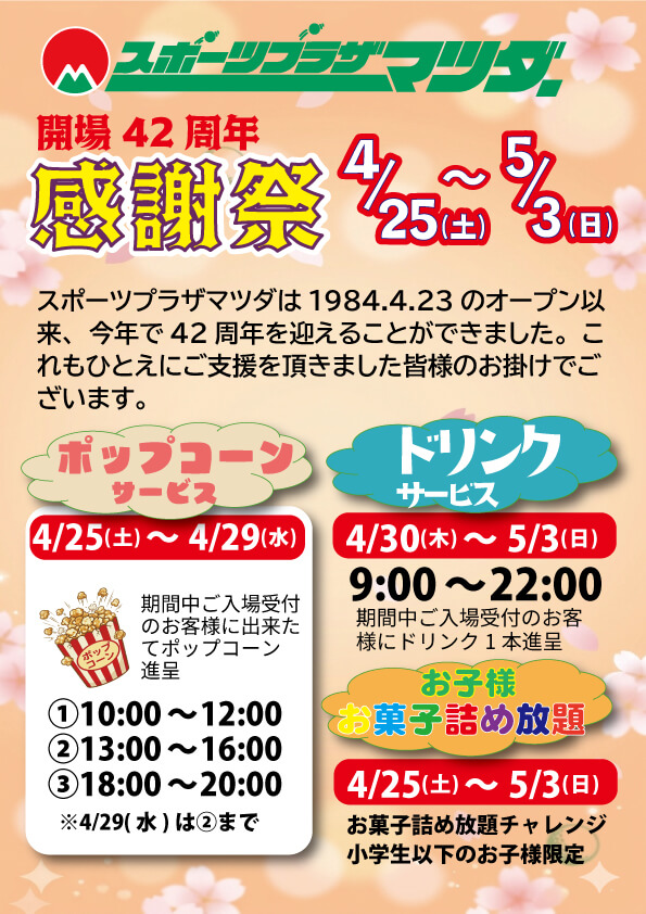 開場42周年 感謝祭 4/25(土)~5/3(日)